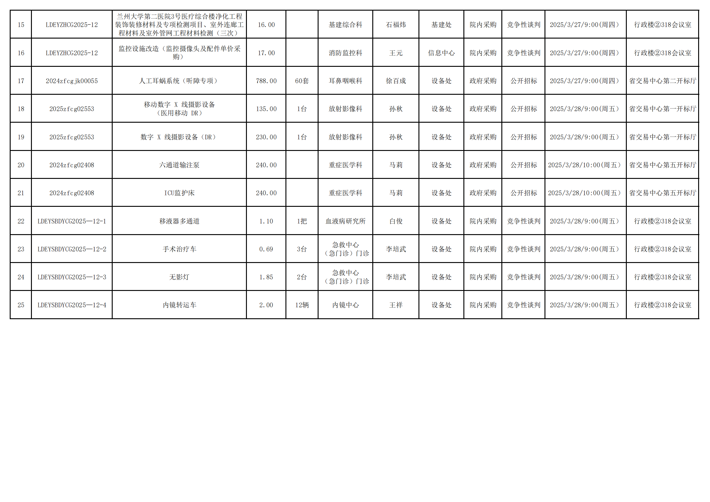2025年3月17日-2025年3月21日采购项目执行计划报备表