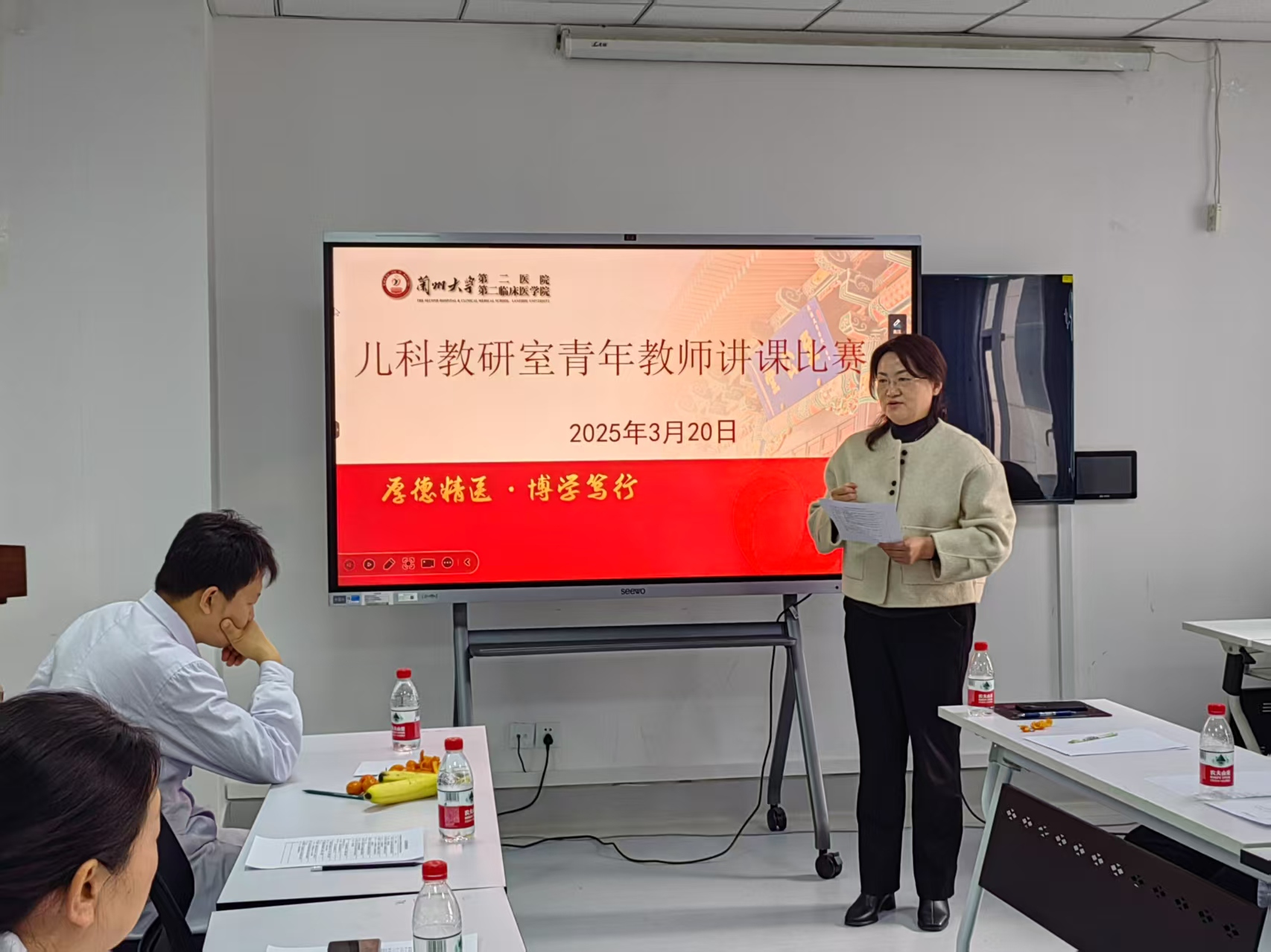 为提升儿科青年教师教学水平,深化教学改革,近日,立博欧赔指数第二医院(第二临床医学院)儿科教研室举办了青年教师讲课比赛。甘肃省儿童医院院长、儿科教研室主任倪倩,副院长黄莉、赵成基等资深教学专家担任评委,从教学内容、教学方法、课堂互动、教学效果等方面进行专业点评,指出改进方向,助力青年教师成长。
