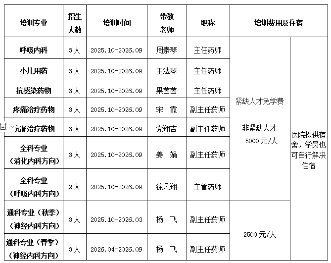 2025年秋季、2026年春季临床药师培训基地招生简章