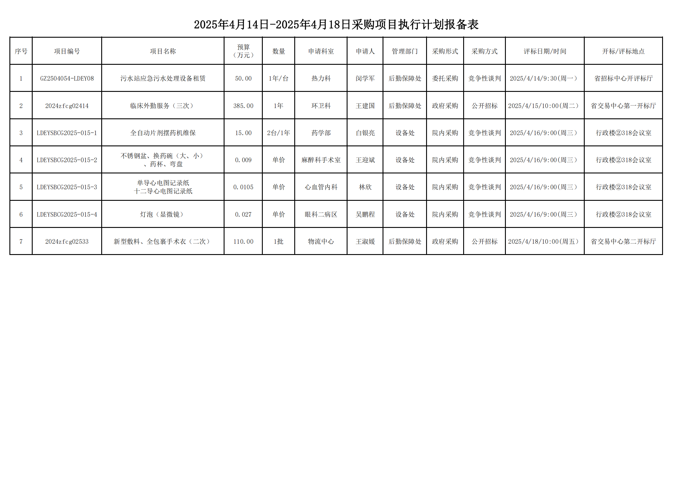 2025年4月14日-2025年4月18日采购项目执行计划报备表