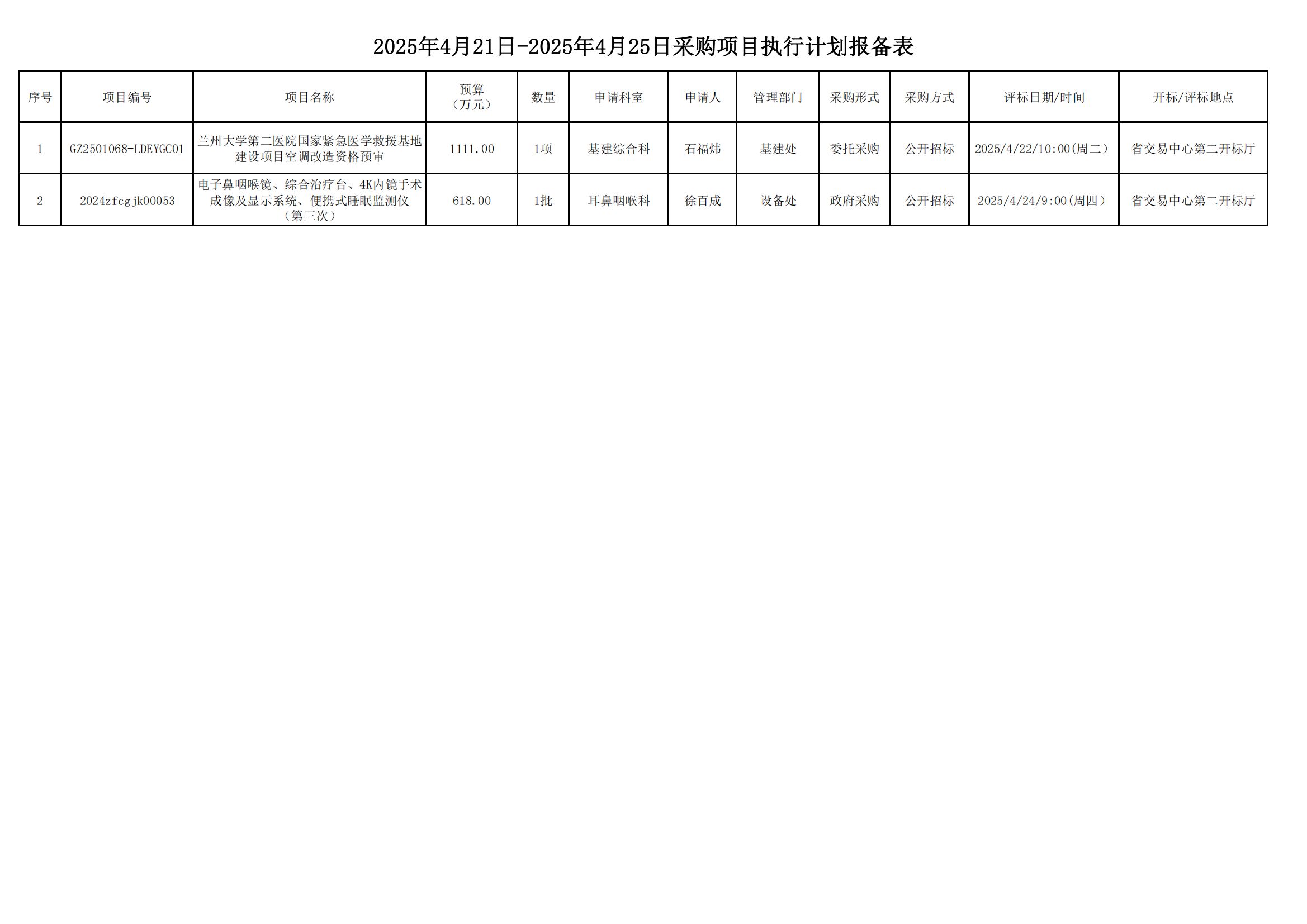 2025年4月21日-2025年4月25日采购项目执行计划报备表
