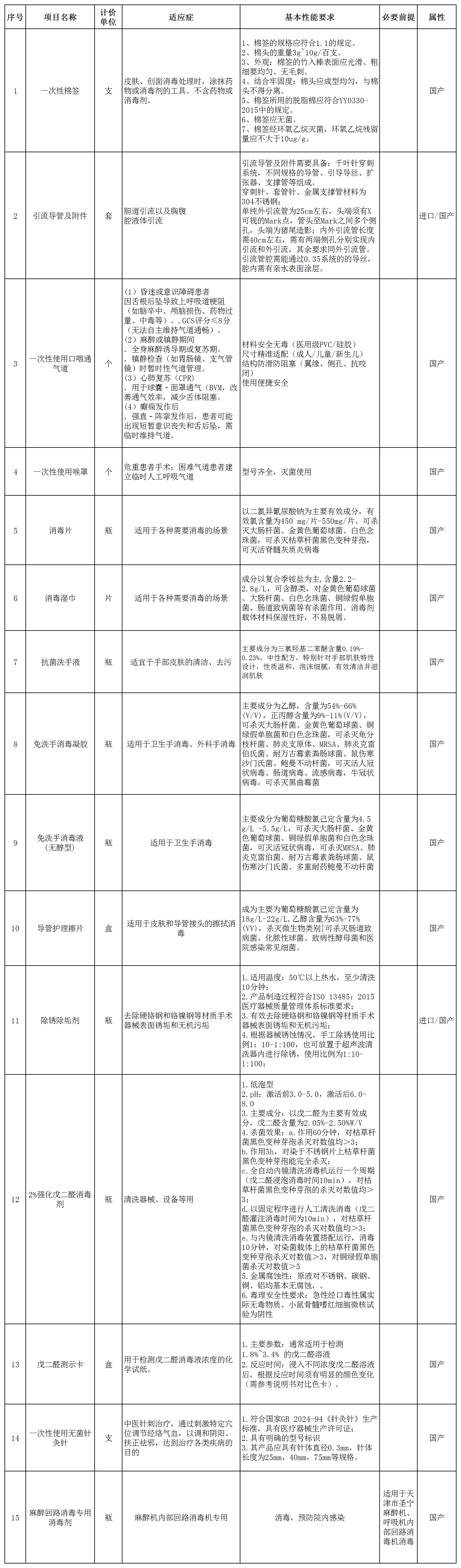一、医用耗材遴选内容一览表: