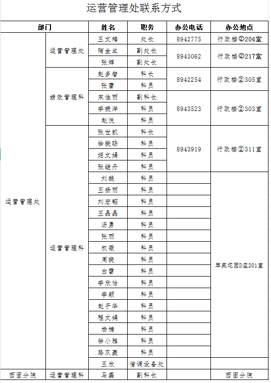 运营管理处联系方式
