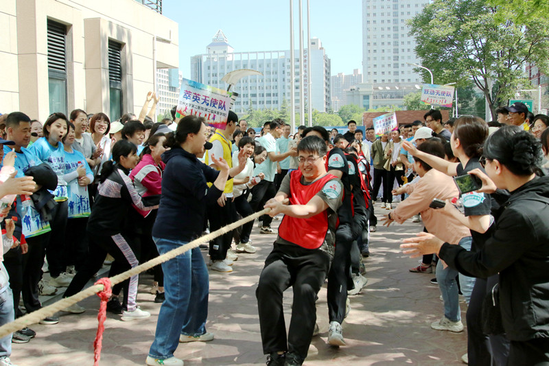 用默契配合诠释白衣天使的理想信念。“天使力量”拔河比赛现场激情四射,队员们紧握长绳、扎稳马步,随着哨声响起,齐心发力、奋力拼搏;场边啦啦队呐喊助威,将现场气氛推向高潮。拔河比拼的不仅是力量,更是团队协作和永不言弃的精神,就像护理工作一样,只有同心协力,才能为患者提供更优质的服务。通过激烈比拼,兰大二院代表队喜获团体一等奖。