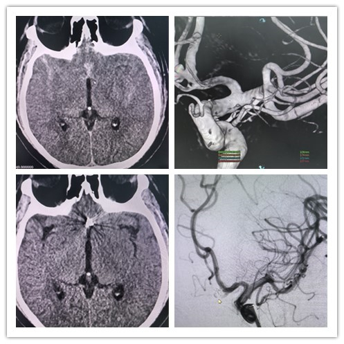 患者为38岁男性,因剧烈头痛伴喷射性呕吐3小时收住入院,积极完善相关检查后,结果显示为脑动脉瘤破裂致蛛网膜下腔出血。陇西县第一人民医院各部门积极协调,迅速开通脑卒中绿色通道,兰大二院神经外科帮扶队员刘吉星携手当地医院神经介入团队为患者成功实施了“支架辅助下颅内动脉瘤弹簧圈栓塞术”,精准完成破裂动脉瘤的血管内介入治疗。术后,通过规范化及个体化治疗,患者颅内出血恢复状况良好,各项生命体征平稳,未发生神经系统并发症。