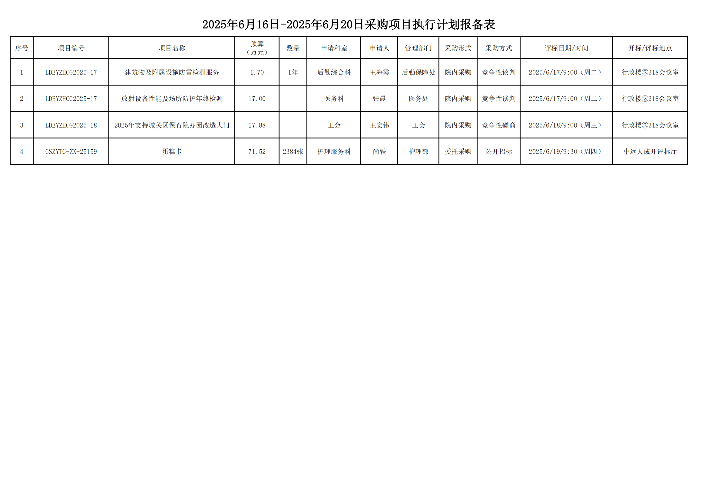 2025年6月16日-2025年6月20日采购项目执行计划报备表