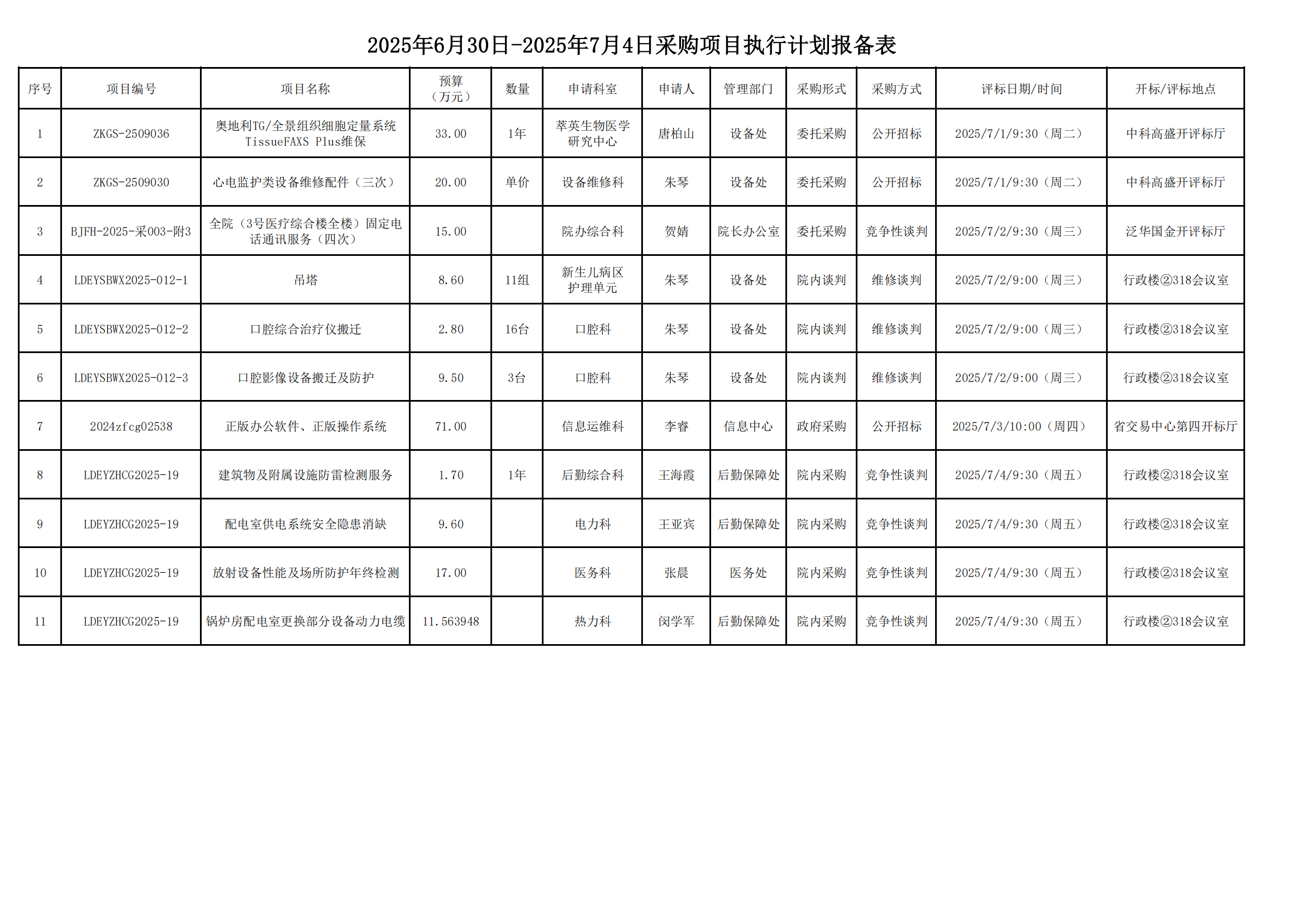 2025年6月30日-2025年7月4日采购项目执行计划报备表
