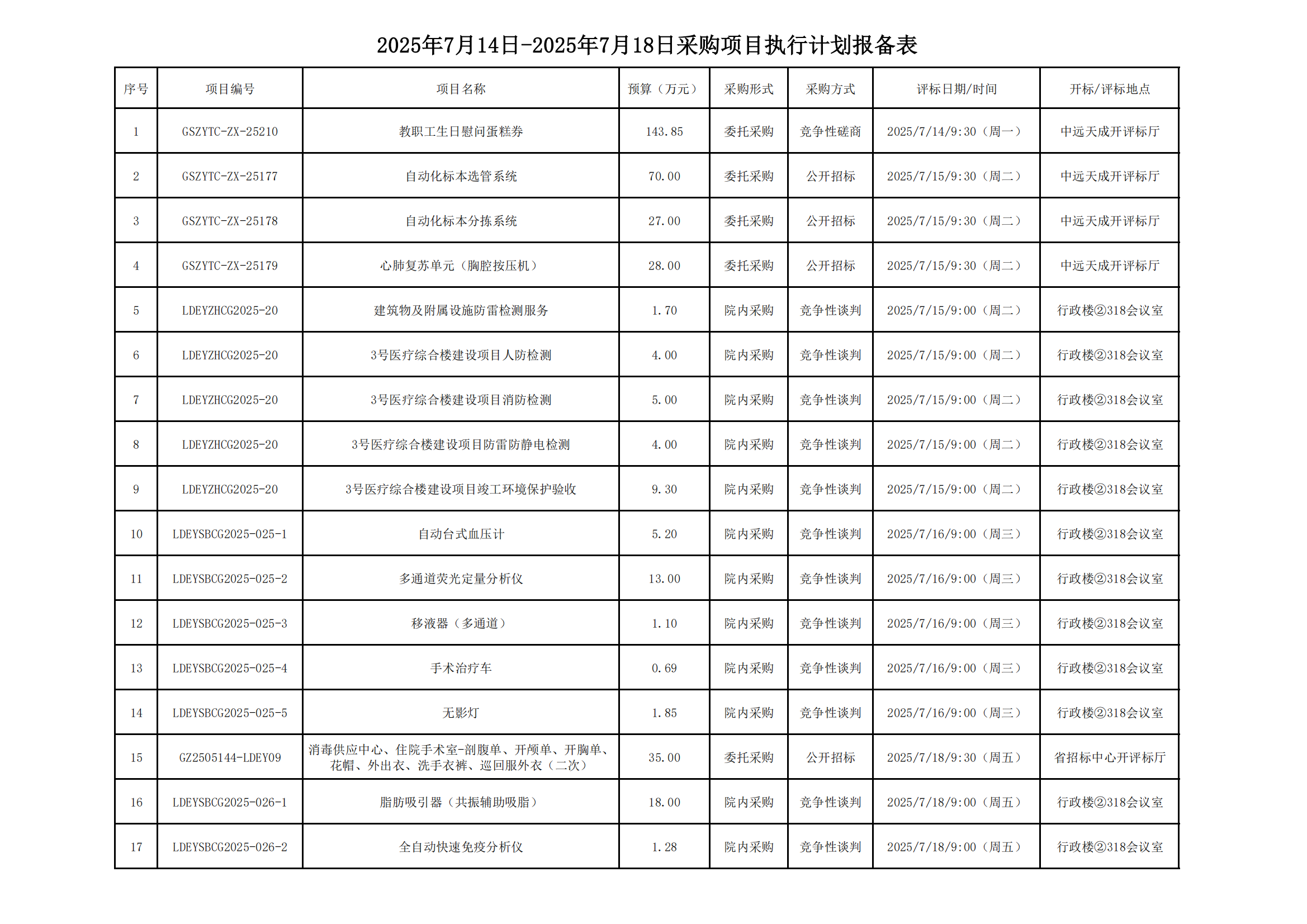 2025年7月14日-2025年7月18日采购项目执行计划报备表