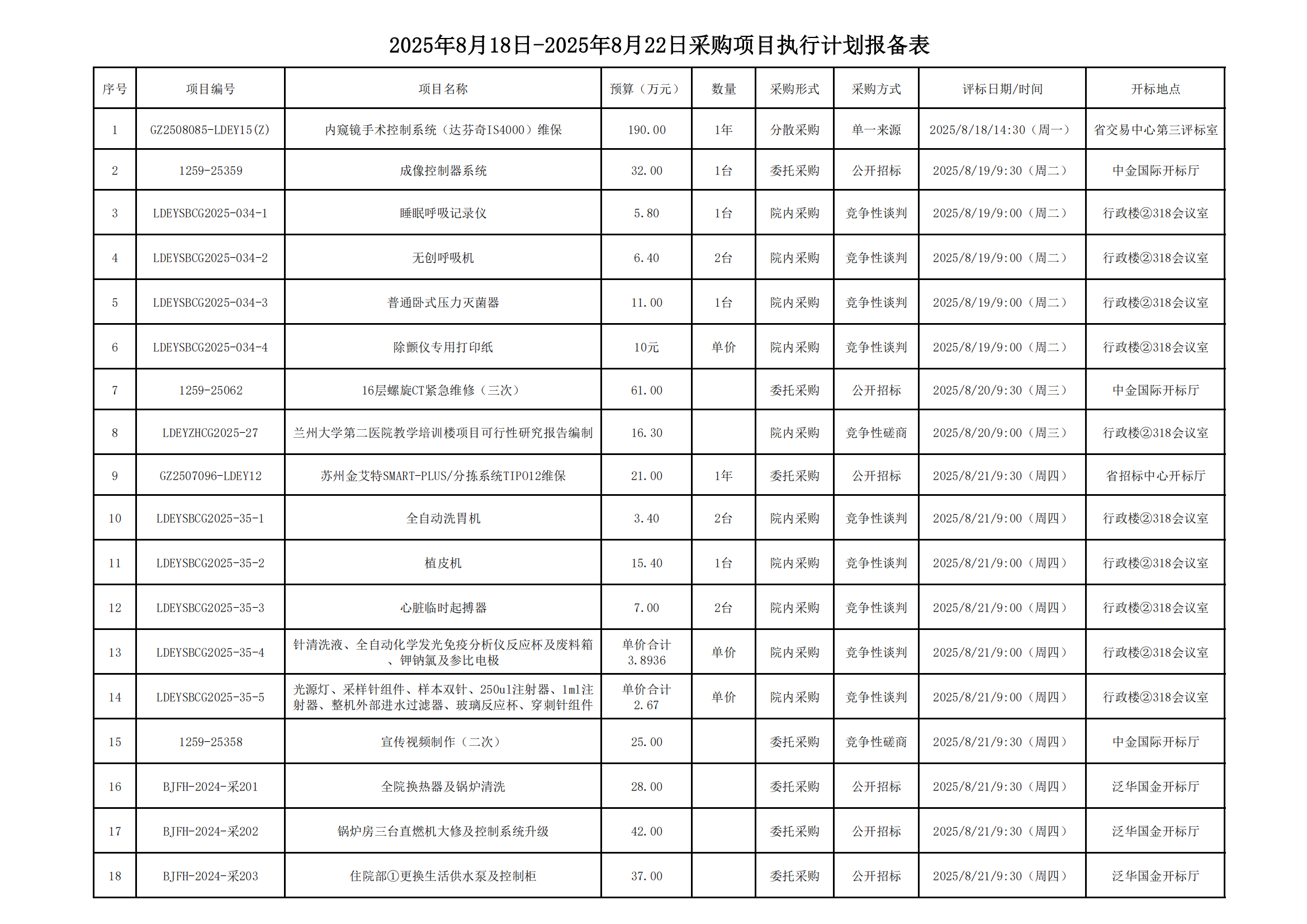 2025年8月18日-2025年8月22日采购项目执行计划报备表