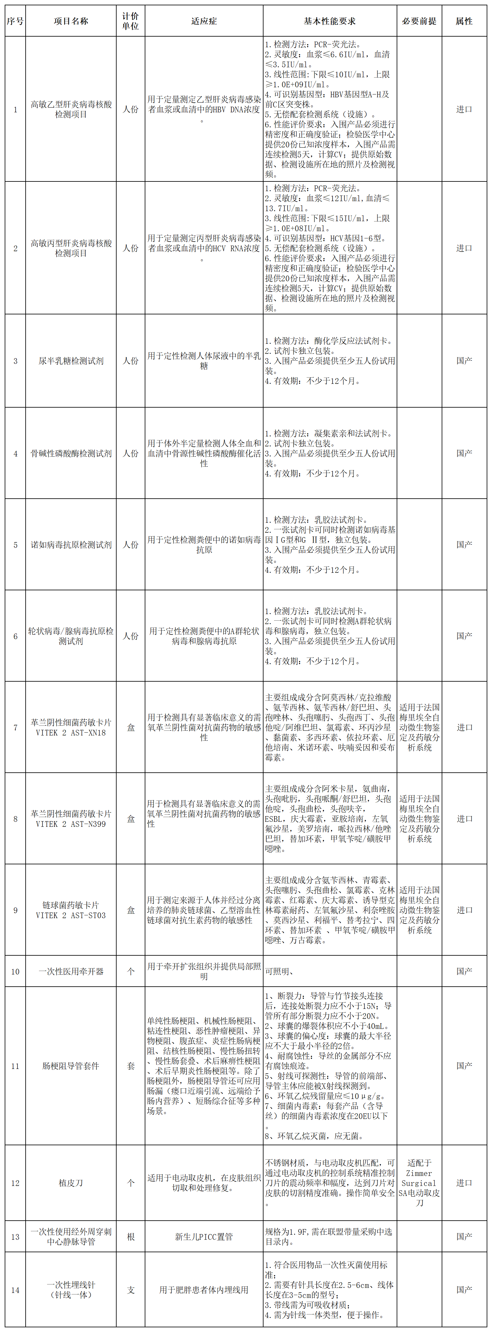 一、医用耗材遴选内容一览表: