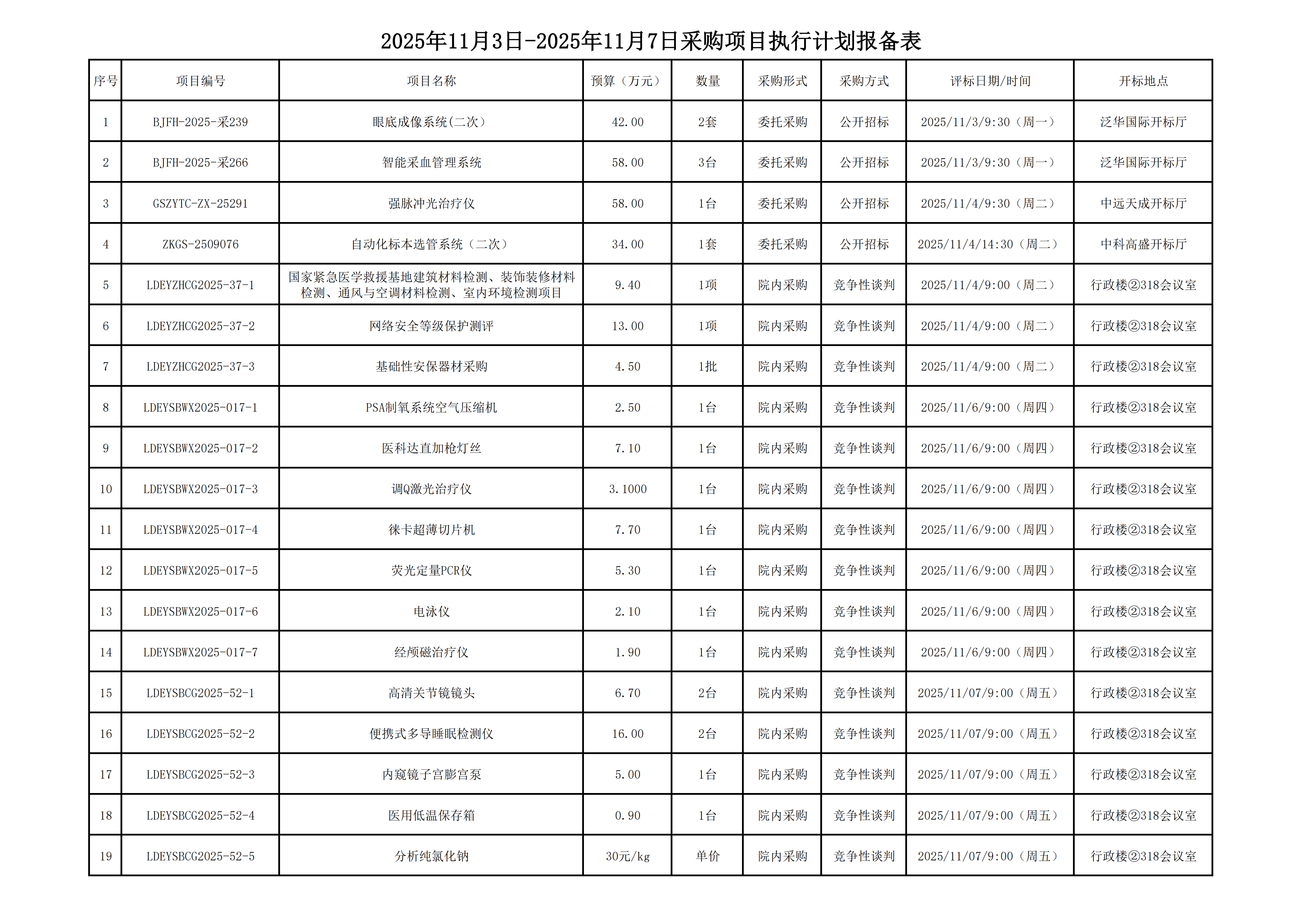 2025年11月3日-2025年11月7日采购项目执行计划报备表