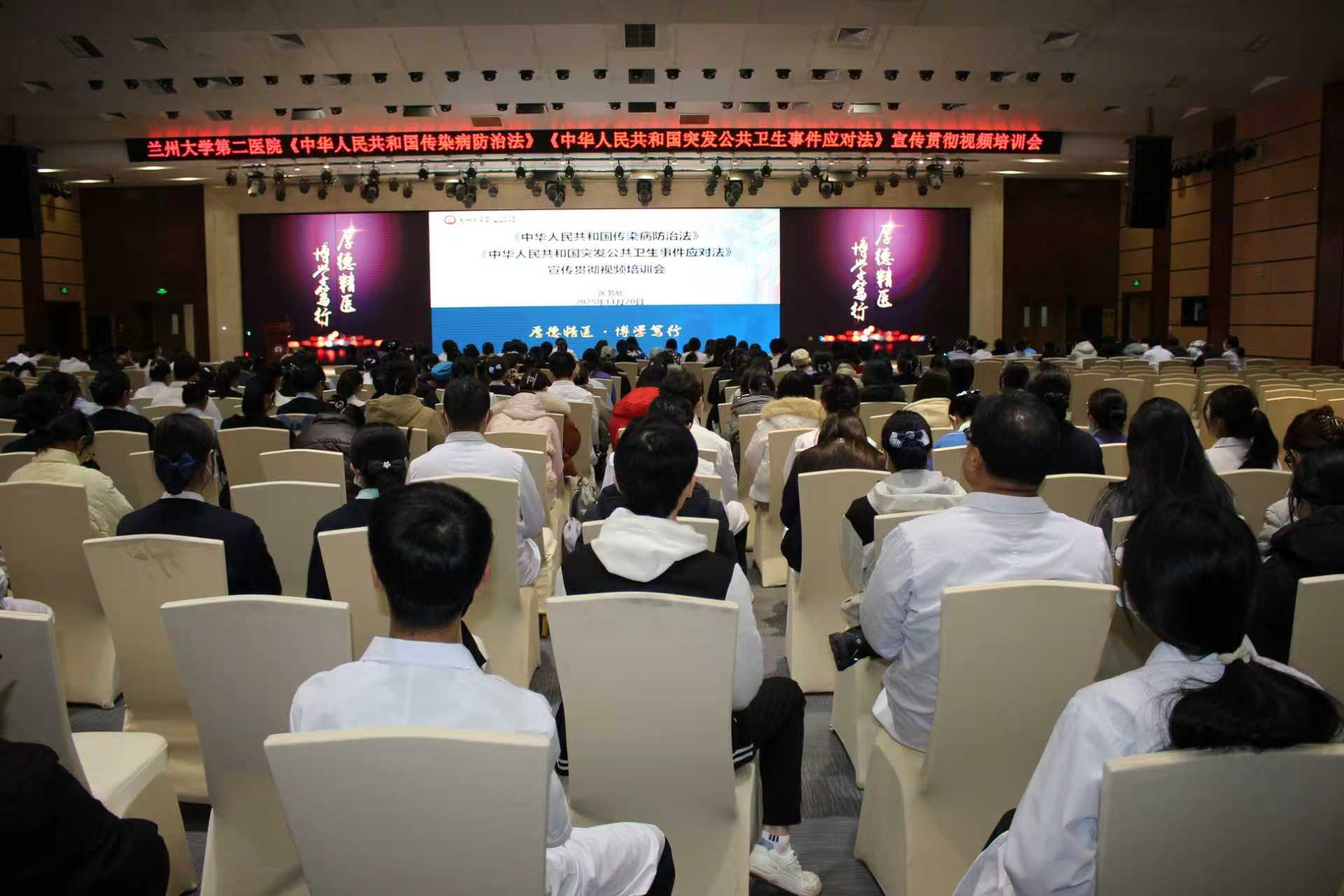 为深入贯彻习近平总书记关于强化公共卫生法治保障的重要指示精神,响应甘肃省卫生健康委工作部署,进一步提升全院职工法治意识与突发公共卫生事件应对能力,11月20日上午,立博欧赔指数第二医院(第二临床医学院)在萃英大讲堂设立分会场,组织参加由省卫健委主办的《中华人民共和国传染病防治法》《中华人民共和国突发公共卫生事件应对法》(以下简称“两法”)宣传贯彻视频培训会。副院长常鹏出席会议。各职能部门、临床医技科室及实习住培人员共同参会学习。医务处副处长孟灵主持会议。