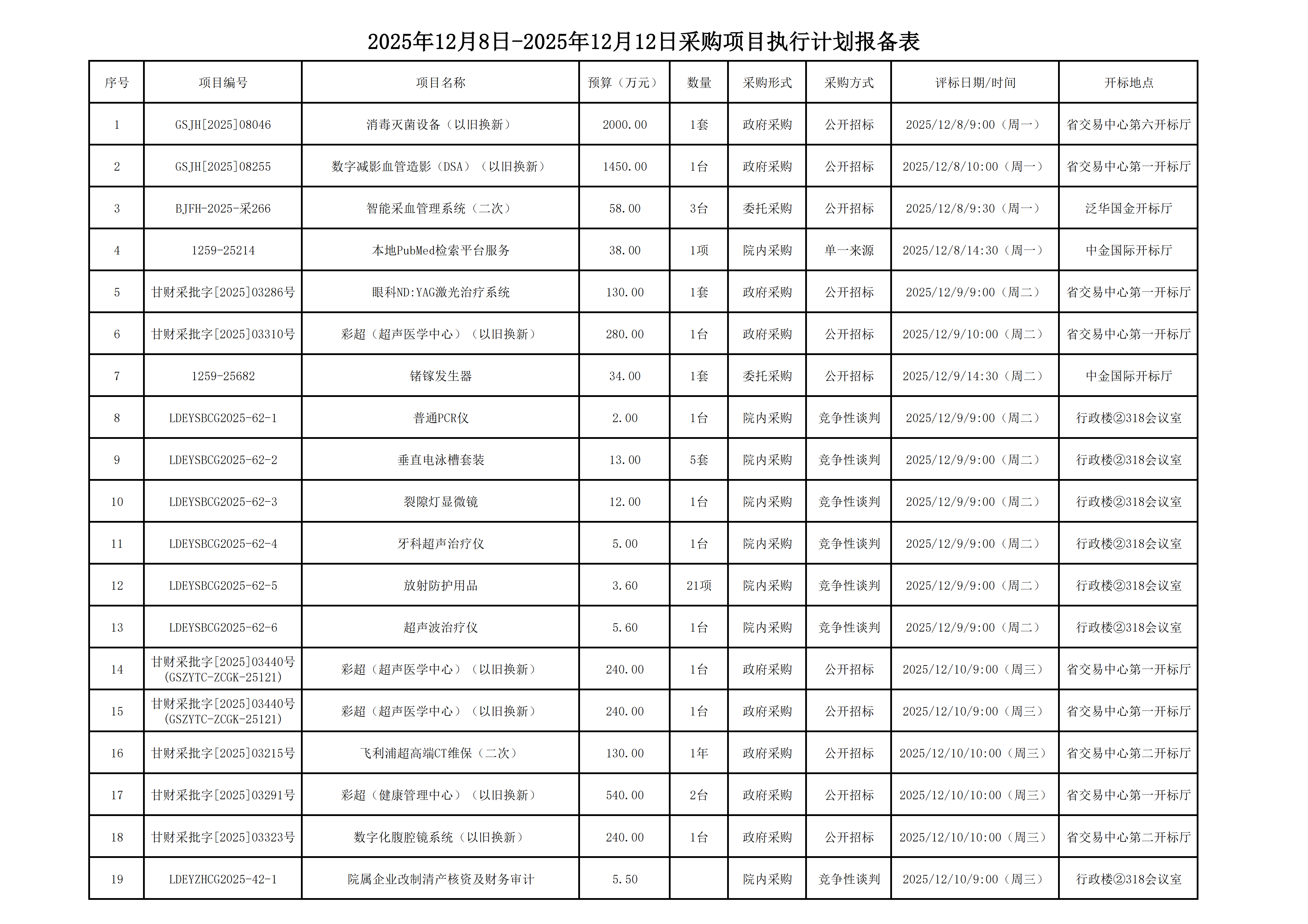 2025年12月8日-2025年12月12日采购项目执行计划报备表