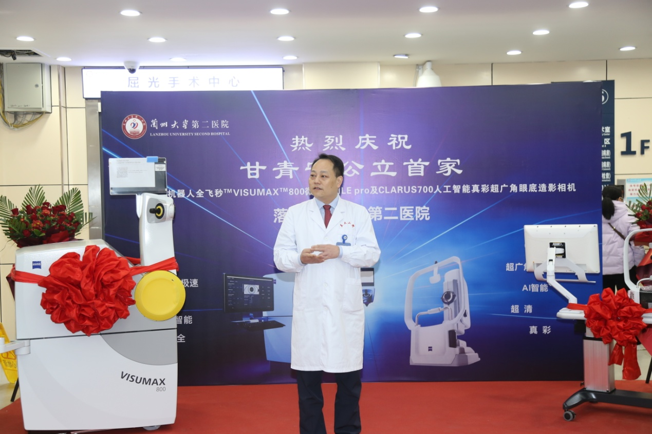 12月26日,兰大二院举办新一代机器人全飞秒 VISUMAX 800(SMILE Pro)落户仪式,庆祝甘宁青地区公立医院首台仪器正式落地。这标志着兰大二院近视屈光手术向更精准、更快捷、更舒适方向全面迭代,开启“10 秒核心扫描”的微创摘镜新纪元。