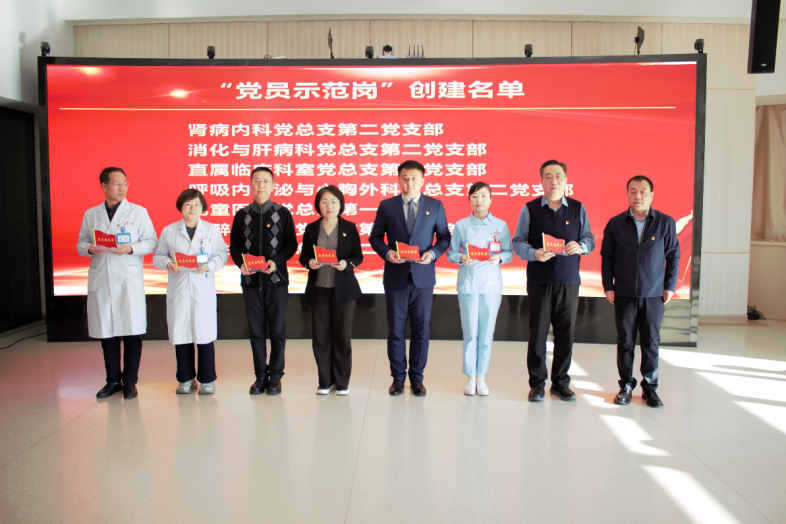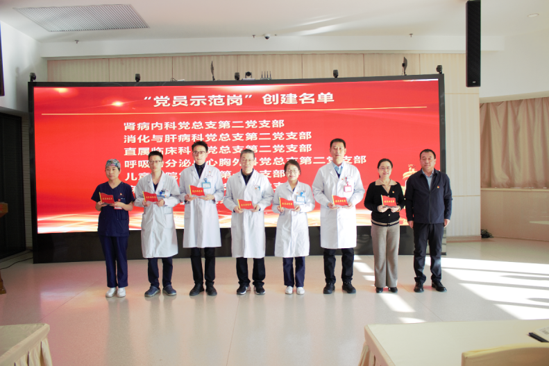 会上,举行了“党员先锋队”“党员示范岗”授旗授牌仪式。杨建文为获评“党员先锋队”“党员示范岗”的党支部授旗授牌。他表示,此次授旗授牌仪式,既是贯彻落实新时代党的建设总要求和新时代党的组织路线的具体实践,也是创新医院基层党建工作特色载体。充分发挥党支部战斗堡垒作用和党员的先锋模范作用的重要举措,更是组织引导广大党员强化党员意识,铭记党员身份,履行党员义务,立足新起点、展现新作为、再创新佳绩的动员和誓师。他同时提出三点要求,一是要坚定不移强党性,淬炼对党忠诚的政治品格、二是要担当作为做表率,彰显共产党员的先锋本色、三是要党业融合促发展,汇聚医院前进的磅礴力量