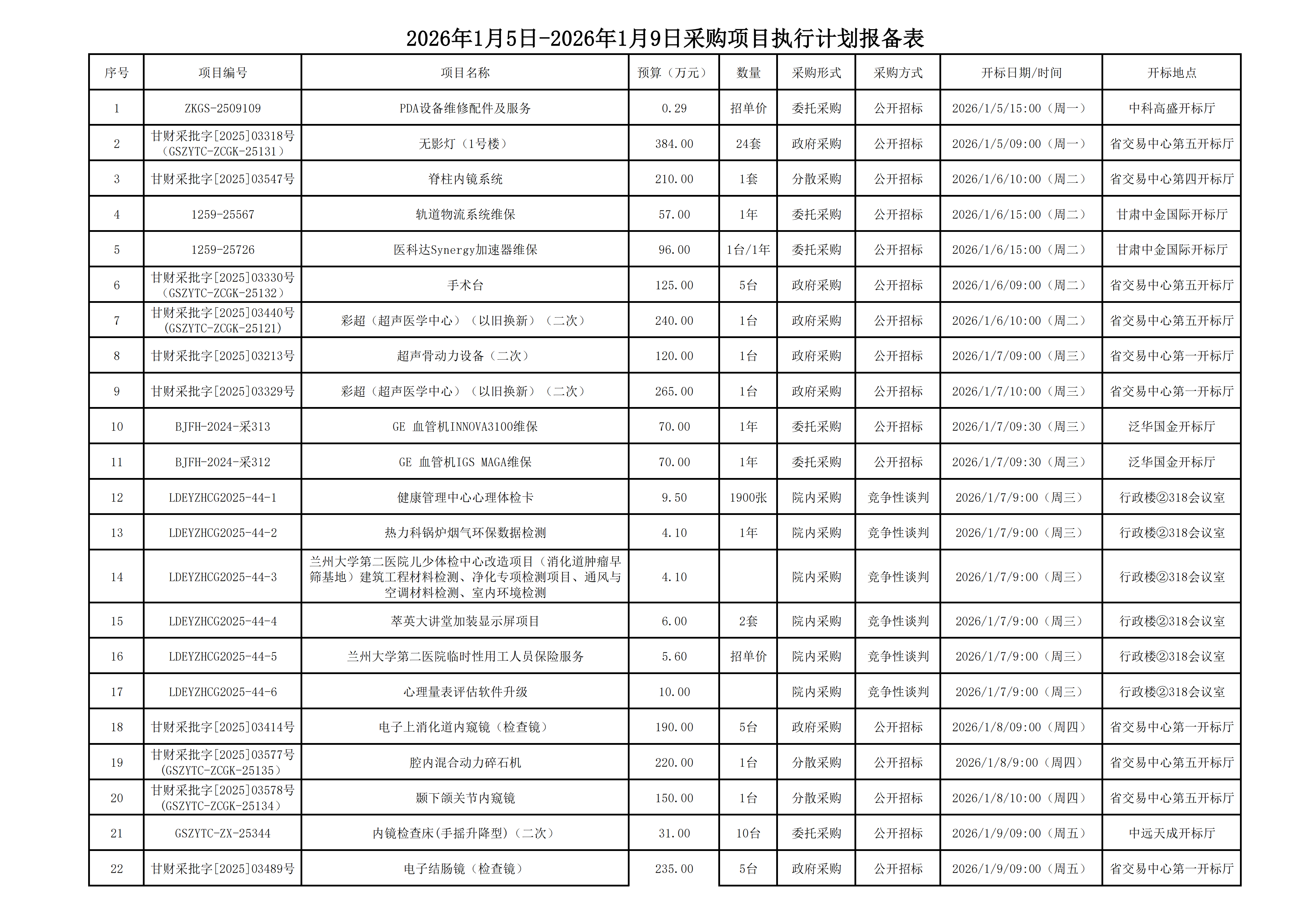 2026年1月5日-2026年1月9日采购项目执行计划报备表