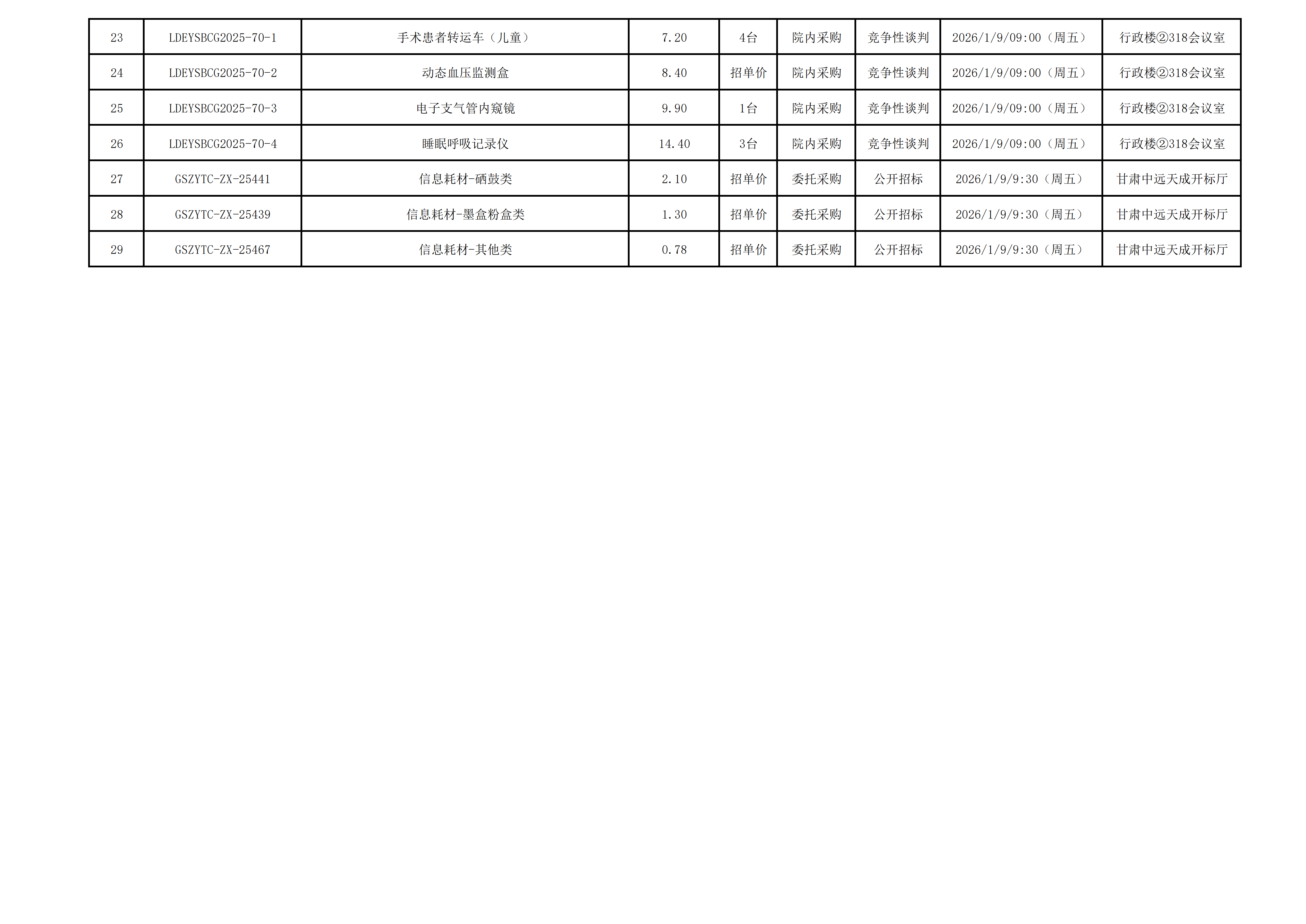 2025年12月29日-2025年12月31日采购项目执行计划报备表