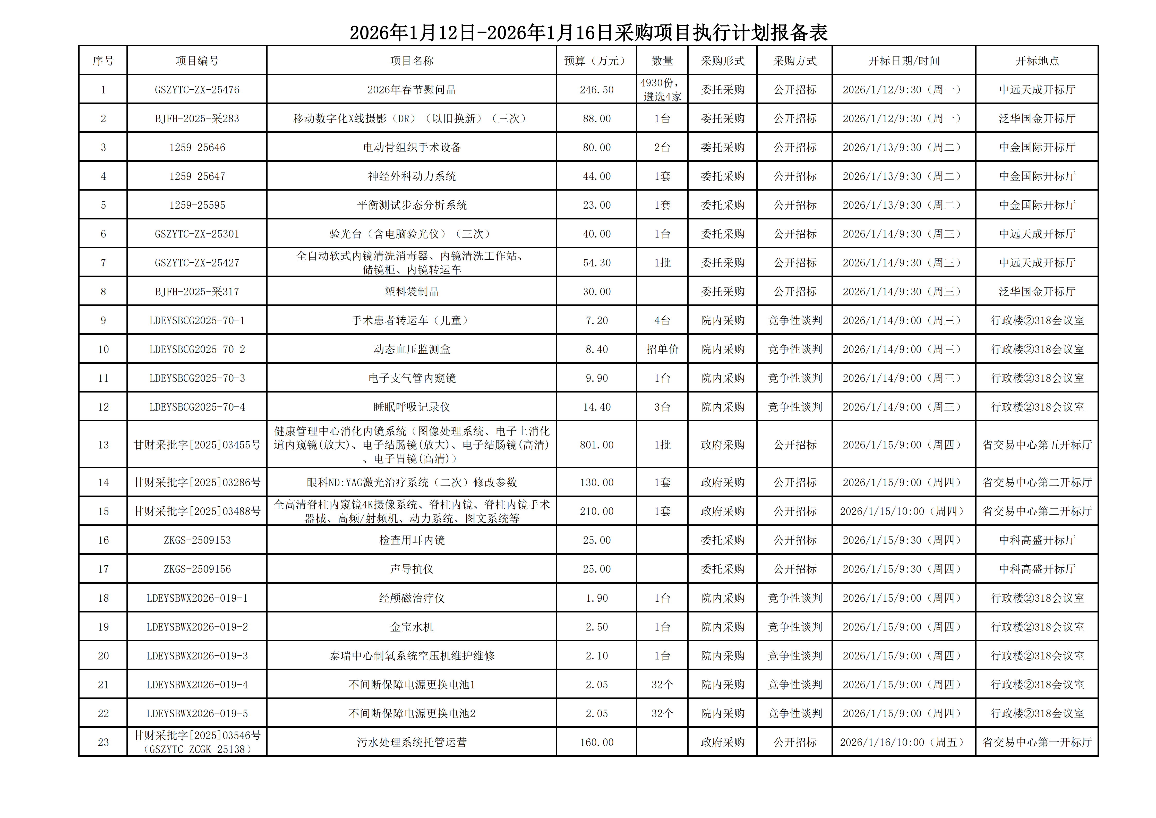 2026年1月12日-2026年1月16日采购项目执行计划报备表