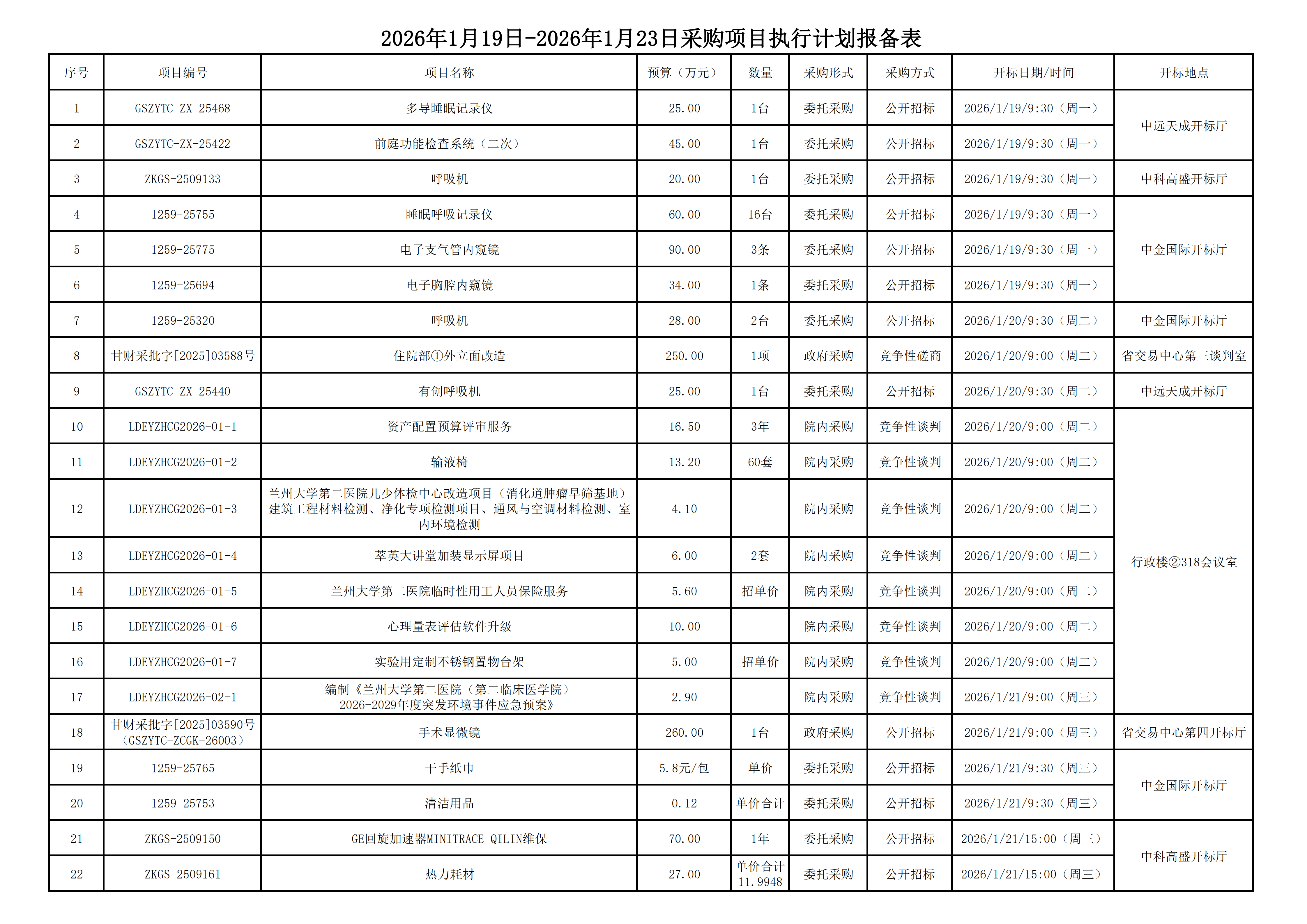 2026年1月19日-2026年1月23日采购项目执行计划报备表