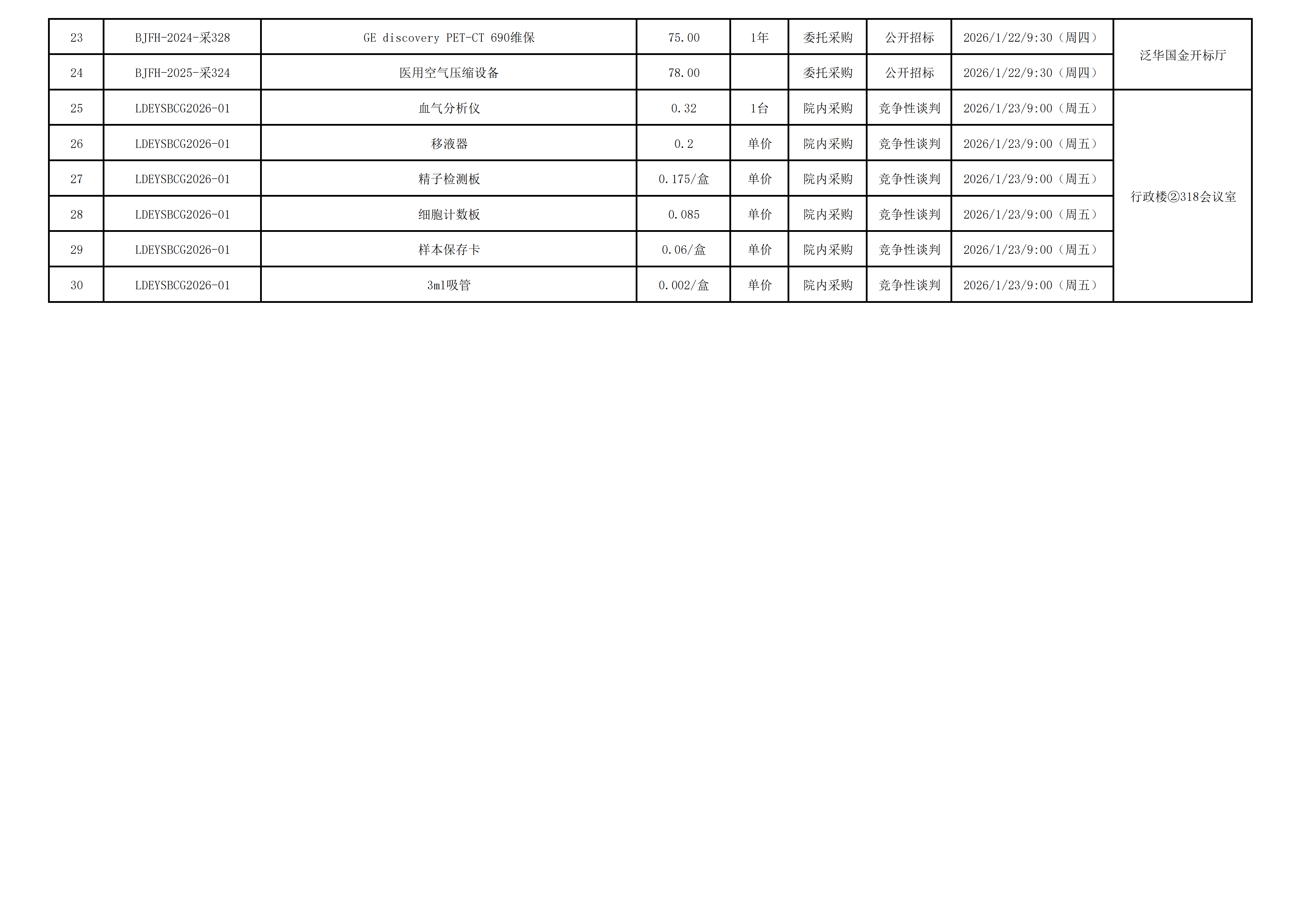 2026年1月26日-2026年1月30日采购项目执行计划报备表