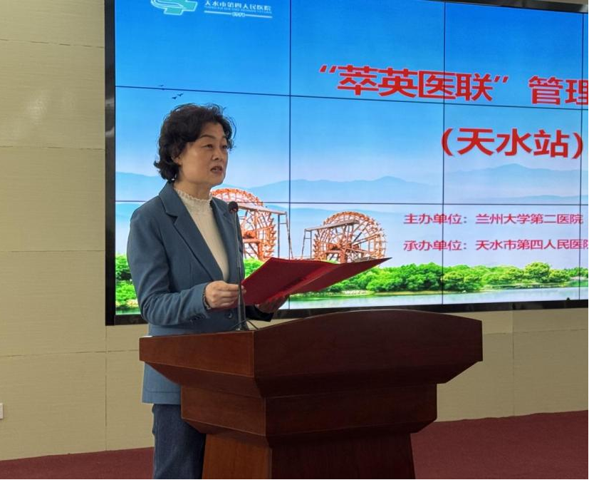 汪小娟代表天水市委、市政府,对培训班的顺利开班和院企合作项目启动表示热烈祝贺,向长期以来关心支持天水市卫生健康事业发展的兰大二院各位领导、专家致以衷心感谢。她指出,兰大二院作为全省医疗卫生领域的龙头标杆,集聚优质医疗资源与顶尖专业人才,在推动优质医疗资源下沉、引领全省卫生健康事业高质量发展中彰显了省级三甲医院的责任与担当。此次兰大二院以 “萃英医联” 医院管理培训班为平台走进天水,通过长期定点帮扶与全方位深度合作,为天水补齐基层医疗短板、提升医疗服务能力带来重大机遇。她希望天水市第四人民医院紧抓合作机遇,潜心学习兰大二院先进的诊疗理念、管理经验和医疗技术,深化学术交流、强化专科建设,让群众在家门口享受优质医疗服务。