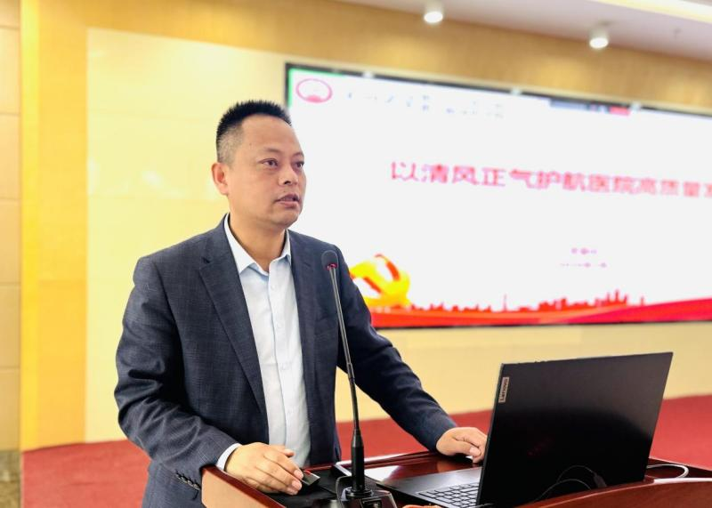 王金山以《以清风正气护航医院高质量发展》为题开展廉政教育,通过政策解读、案例分析等深入浅出地剖析医疗领域廉政风险点,引导全体参训人员坚守医德底线,为医院高质量发展筑牢廉洁行医的思想防线。