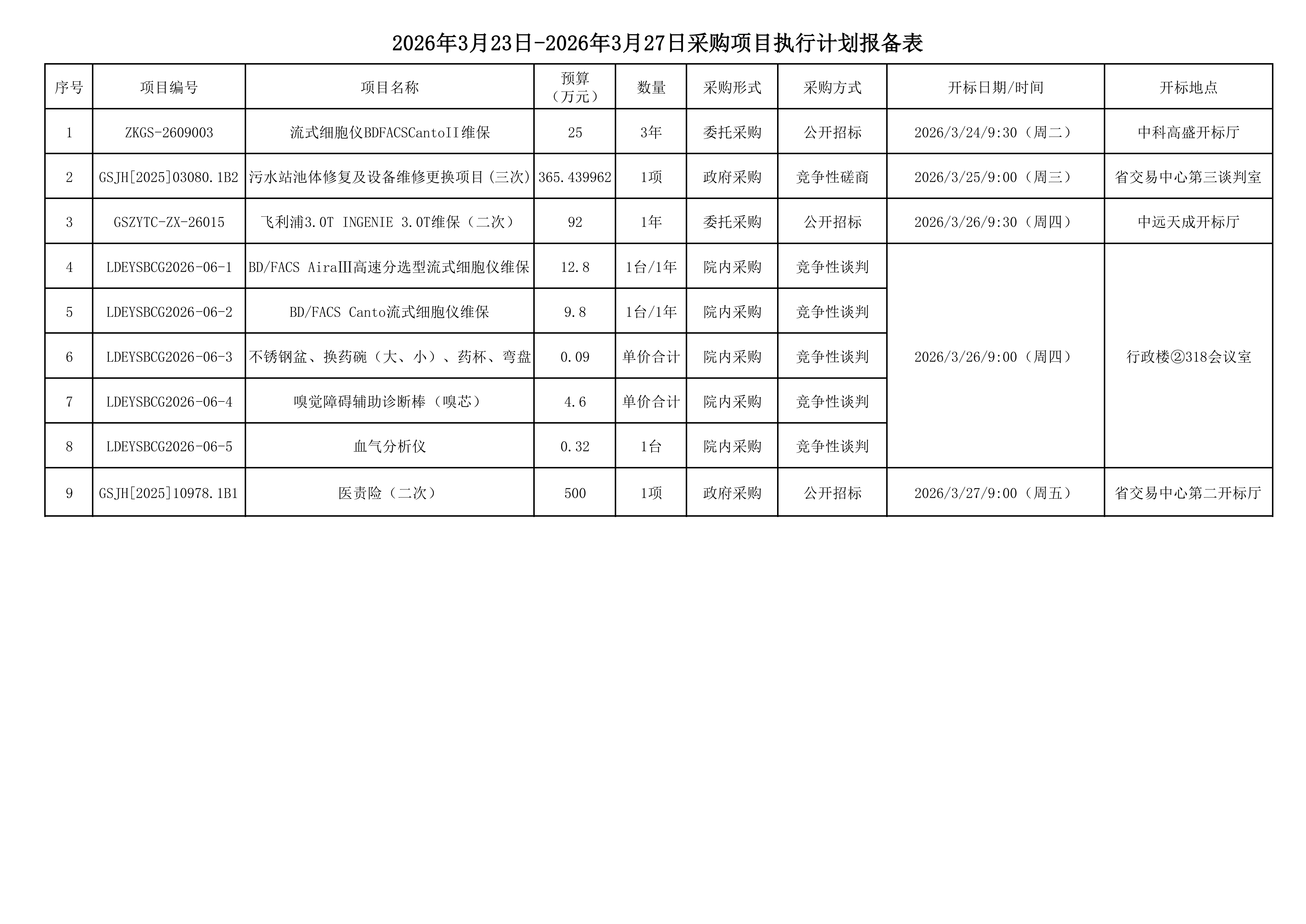 2026年3月23日-2026年3月27日采购项目执行计划报备表