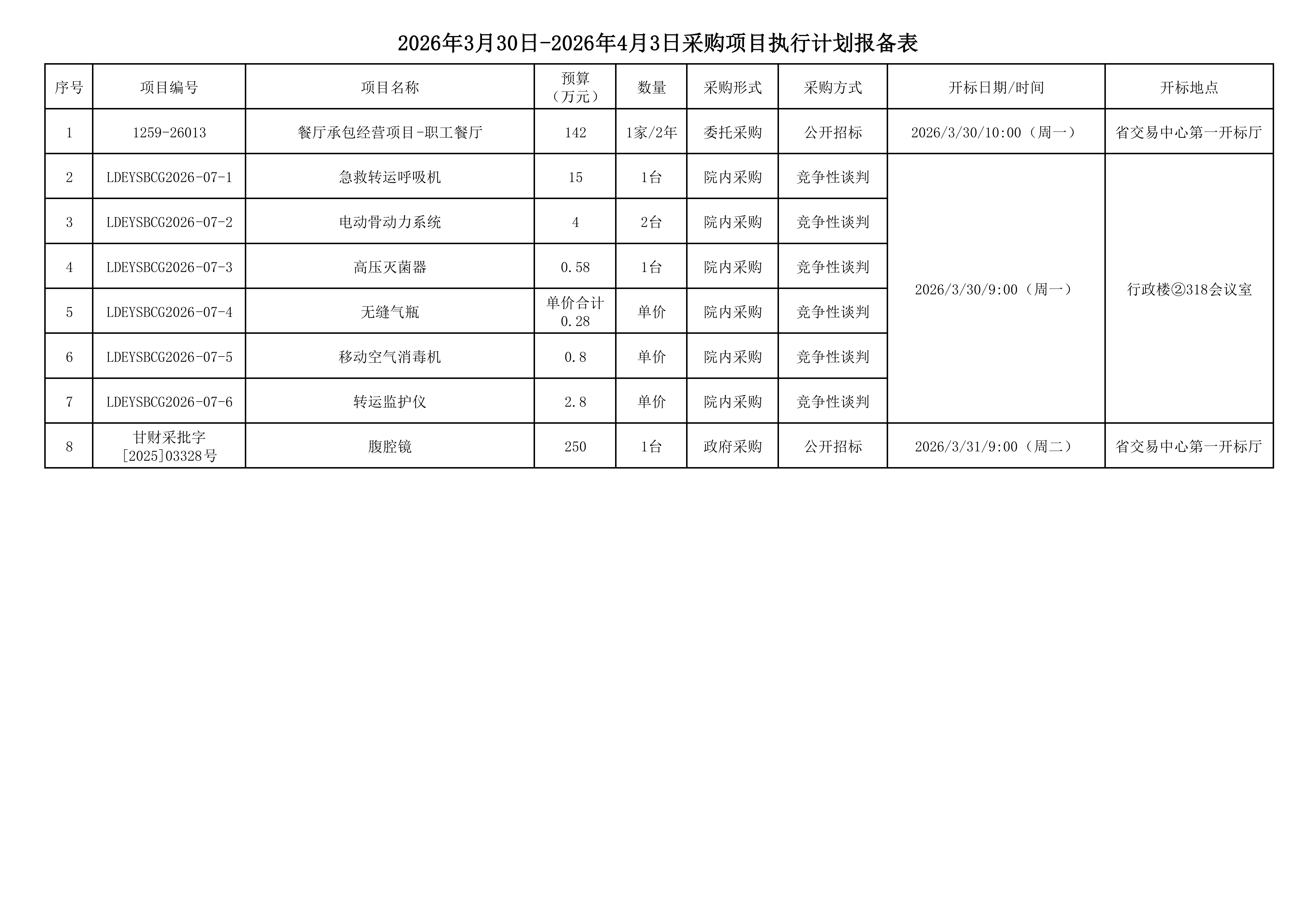 2026年3月30日-2026年4月3日采购项目执行计划报备表