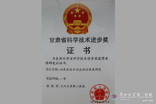 兰大二院荣获2011年度甘肃省科学技术进步奖一等奖