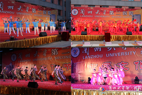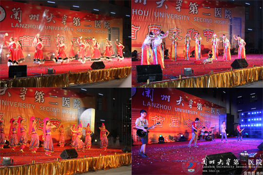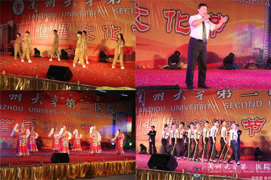开幕式文艺晚会以气势磅礴的《盛世鼓舞》表演开场,全场的15个精彩节目,均由兰大二院各党支部、部门自编、自排自演,有独唱、小乐队演唱、军体拳表演、旗袍秀、大合唱、街舞、爵士舞、民族舞等组成,一个个节目气势恢宏而不失阴柔之美,热烈激情而又不失温情,由二院护士长团队表演的婀娜多姿的《旗袍秀》更将演出气氛推到顶点,由60位离退休老同志表演的腰鼓、柔力球垫场演出赢得大家的欢呼。 整场开幕式内容丰富,形式多样,精彩纷呈,高潮迭起,博得场下观众阵阵掌声,也让大家完全置身于融洽的喜悦气氛中,在终场五彩缤纷、绚烂夺目的焰火燃放下,大家沉浸在欢乐的夜晚中。
